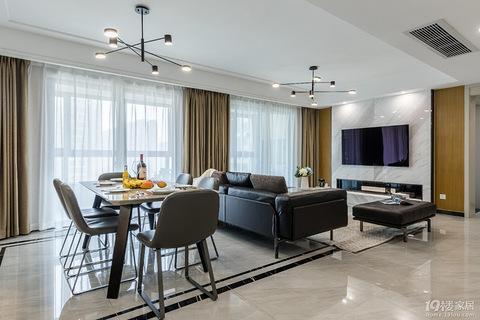 户型解析业主信息: 本案的业主是一位80后白手起家的企业家,经常出差,喜欢品红酒,小孩有钢琴,父母虽然在外地,但是也会偶住,在155的房子里,空间的合理规划设计师花更多的心思。 案例:155㎡现代简约房屋信息:东南海空间格局:4房2厅1厨2卫客厅整屋的整体主色调选用黑白灰,客厅也不例外,永恒的经典搭配,但是每个空间都有其个性;搭配上木饰面、金属的工艺质感,环境简约中带着时尚。 客餐厅选用一体式的棕
