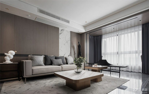 一起一落是人生,一喜一忧是心情,一苦一甜是生活,一朝一夕是日子,一忙一碌又一年。一岁人,一岁经历,一岁悟。让未来的生活,因简单而幸福。 本案为三室两厅建面130㎡平层,屋主为一家四口,屋主想在孩子小的时候有个公共区能让孩子玩耍,在满足功能需求的情况下牺牲一个空间让小孩子跟父母互动空间。因为屋主很信任设计师,软装部分全权交于设计师的想法来设计。 客厅靠阳台,整体为木饰面装饰设计。沙发背景墙面为木饰面