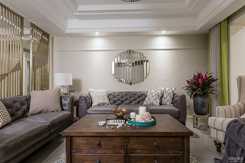 155㎡四居室打通客厅的美式风格,棕色家具大气庄严。