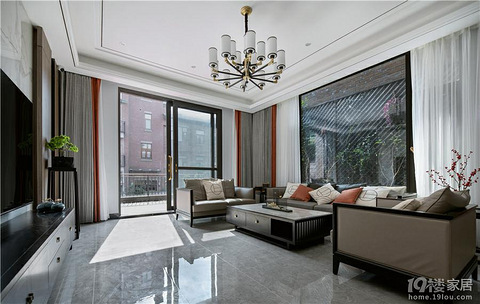 四层排屋新中式风格,合围式客厅简洁儒雅,餐厅柜子实用显档次