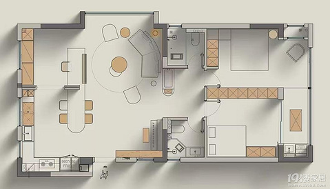 暖色原木风,本案通过对结构重新塑造,以开放互通的形式表述生活的方式,拓展空间的视野和光线的流入。