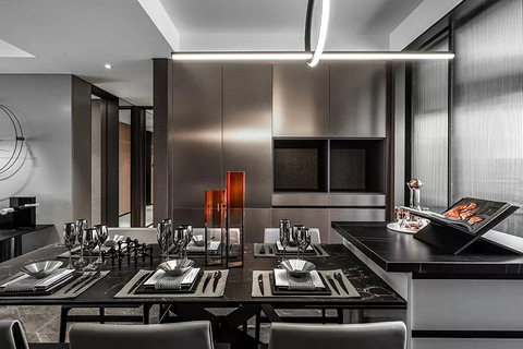 现代风格 -- 无主灯设计让空间更加简洁没有厚重感,木饰面元素让空间层次更丰富的同时带来自然的温度,不显冰冷。把黑色完美的植入这个家,让现代感、颜值与质感融于其中。