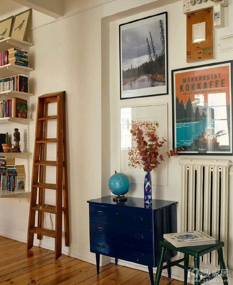 自古红蓝出 Cp 在家居搭配里也毫无违和感红色的门框、蓝色的家居复古色彩的把控得心应手