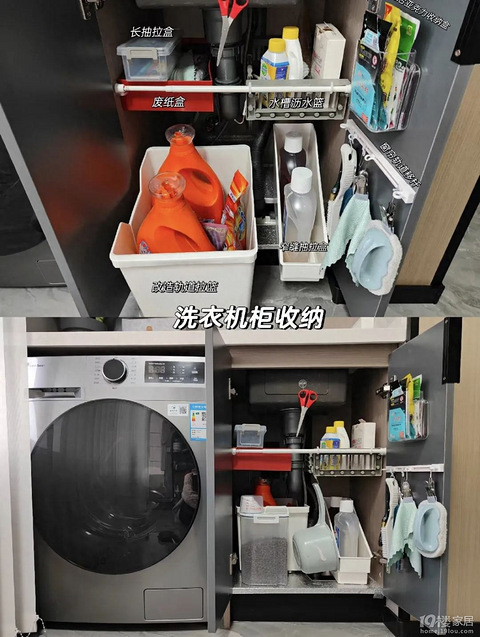 比如洗衣的清洁、柔顺剂,甚至洗衣机清洁剂,最好的放置位置是洗衣机周边;而垃圾袋放在垃圾桶旁边,方便更换;厨房小工具,整齐挂放,省去了翻找的时间。缩短动线拿取路线,也是高效家务的必要过程。