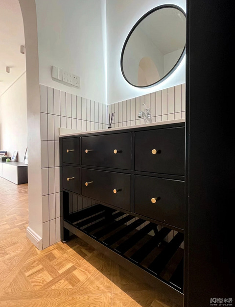 先从浴室柜说起,远看下图,可能还会有几分羡慕,配色漂亮,储物空间也足够。可时间一长,近一看,可能就会不会让人感觉那么美好了,底部的卫生死角,拖把、扫把都不好使,长期清理不到。为了解决掉这个卫生死角,落地是不太现实了,没有“腿”浴室柜,人站立在旁时,脚不能放进浴室柜下面。想贴紧浴室柜,身体得倾斜的,较为不舒服。可以说,唯一可选的方案就是:挂式的浴室柜。#一人一个装修经验 #7月我家的样子 #我理想中