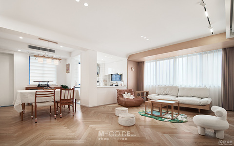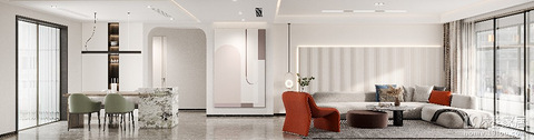 生活是个和自己和解的过程,无论外面有多喧嚣,听听自己心里的声音,静静的听,嘘~ 该方案是浙江省杭州市富阳区金汇之星的一个平层设计,业主是一位教师,每次和她聊天都有很多收获,当时沟通的时候聊及生活,虽然还未开始装修,便已经有了很大的启发和感触,后来在对接平面的时候确定了极简的装修风格。简单,豁达,这才是生活的态度。客厅的设计选择浅色的艺术涂料作为主色调,整体的搭配并没有特别复杂。极窄的金属拉丝玻璃