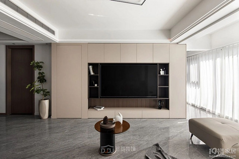 满墙电视柜和传统的小电视柜相比,空间利用率更高,能把整面墙的空间都用上。 想要做满墙电视柜且不显压抑,最好遵循“藏八露二”的设计原则,更美观。 做一门到顶设计,收纳空间不浪费,而且也不容易藏灰。无拉手设计让柜体立面更显简洁大气,如果家里有老人小孩,也能避免磕碰。