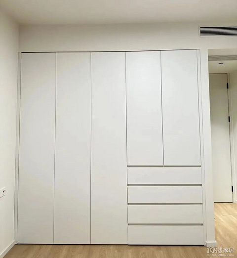 我的建议是:果断选外抽。原因是外抽,更方便,可以更「懒」的去收纳衣物,不像内抽,还得开门,再拉抽屉。麻烦不说,关键抽屉还小的不行,如果做外抽,抽屉的深度可以做到55+,而如果做内抽,抽屉的深度一般都是46cm。我知道会有人说,外抽比较丑,没有内抽看起来那么整端、简洁。这一般都是定制商家无能的言论,别信,你看上面的外抽,都不算是细节做得最完美的外抽,只是做了一个内嵌拉手,不也挺漂亮的嘛。