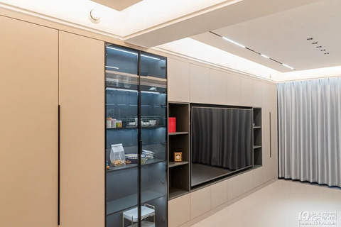 电视柜分为简单型和定制型。简单的一字型电视柜,无论是成品的还是定制的,底部都要留空,主要是为了方便日常清洁,台面上方还可以满足收纳、展示的需求。 如果是定制的满墙电视柜,可以适当设置留空柜,避免整墙的压迫感,留空处摆放一些工艺品、装饰品等,营造别样的层次感和设计感。#一人一个装修经验