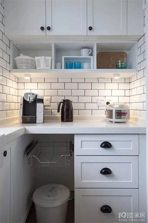 1.垃圾桶的安身之所经常做饭的家庭,餐厨垃圾是非常多的,几乎每天都会满满的一桶,所以垃圾桶是必备的,而垃圾桶在厨房动线活动空间有限的情况下,就会显得碍事了,而在橱柜下留空一个位置,正好就可以成为垃圾桶的安身之所了!2.开放拉篮,方便收纳开放的格子,可以装上拉篮,这样干货类的食物,放在这个通风的位置,会更加合适,而且取用的时候也更加方便。3.移动收纳架,灵活方便的操作台面空间不够用的话,有些人可能会