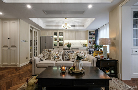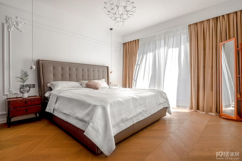 人字拼地板和做旧的仿古砖墙面显示出典雅花卉家纺和乳白色木柜墙面又流露着温馨简美风格在165平的空间里洋溢享受生活就得留几处居心地卧室的单人沙发椅飘窗摆上小茶几都是特意安放,独处随便做点什么……