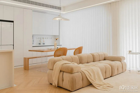 拿房前开心一年,进门后沉默半年,恭喜这位业主喜提“全国统一精装房”!不过精装房再丑,通过高级的软装搭配手法,也能和理想中的家一点点靠近。就比如这种成本低、见效快,性价比高的软装——窗帘。在精装房这个固定的硬装模板里,窗帘面积大,是少数不用大动干戈,就能提升空间氛围感的元素。大幅的窗帘能降低墙地面的比例,将分散的色块统一起来,形成统一和谐的背景基调,为其他软装家具搞定搭配基础。窗帘的材质、配色、款式