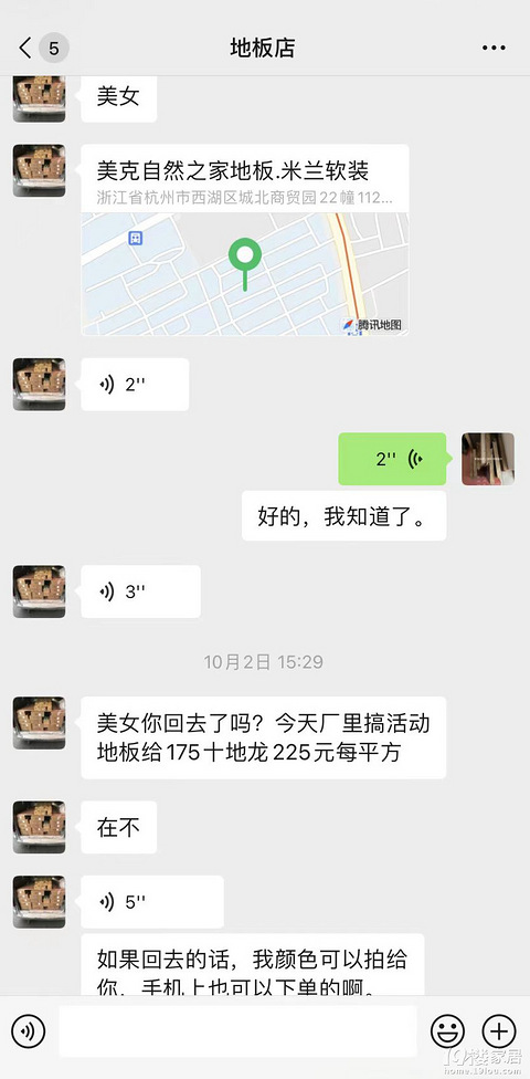 装修进程已过大半,虽然磕磕绊绊,但各方解决问题的态度和方案都还算积极,对人的心理防线松懈,直到我遇到了这帮人马,给我上了人心险恶的一课。 事情要从国庆说起,趁着假期本来是去温州村定吊顶,想着地板也马上要进场了,顺便去看看地板,无意中进了这家店(美客自然之家,什么装饰材料都卖),一个大眼睛的销售主推一款叫品种为“欧洲樱桃木”的地板,开价200多,卖的很好。我提出看看番龙眼这些常规木种,店
