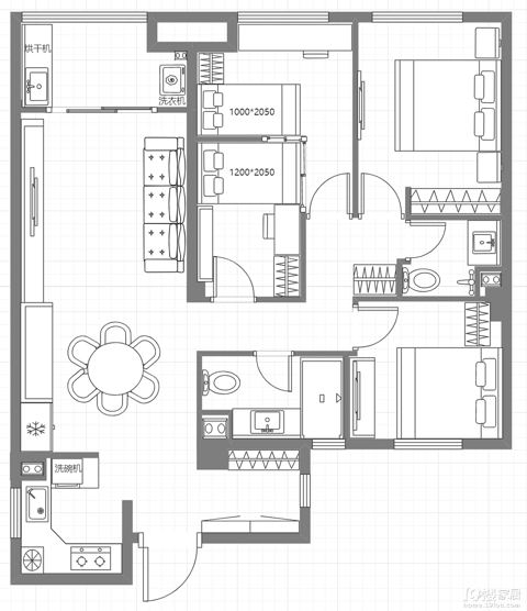 中间套三房改四房,抠出一间儿童房-前期户型规划