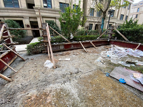 花园整修,草皮换水泥地
