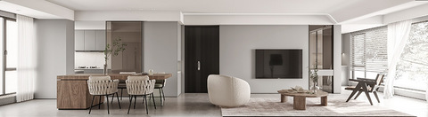 本案的女业主是一位英语老师,喜爱阅读,也很重视孩子的家庭教育,因此提出的需求之一便是不要电视-沙发-茶几的传统式客厅,而是放一个大板桌来打造亲子沉浸式陪伴学习空间。 另外,设计师还将双阳台一分为二,一半包进客厅来扩大客厅的面积,一半包进南次卧做晾晒区域,中间再拉窗帘做软隔断,最大化提升户型的利用率。 全屋空间定调为暖色的现代简约风设计,整体删繁就简,以清浅的外在布设来映照出居者精神的富足与美好。