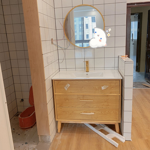 [ej=1F605]浴室太小,做了干湿分离。洗脸台是网购,价格实惠,款式也是自己喜欢的[ej=1F602]洗脸盆又被安装师傅吐糟了[ej=1F602] 这个花洒网上购入的包安装。今天地板也开始铺了 1-2天完工