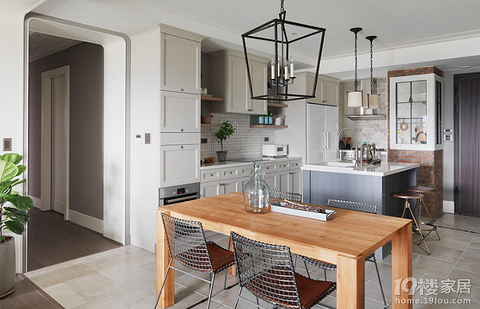 「择良处而栖居,以知性而生活,优雅的心境,坐于云端,隽逸从容。」 本案是位于【微风之城】的一套130㎡的乡村美式风格住宅,屋主是从事音乐教育的老师。房子原始户型较为周正,设计师在改造几个点之后,使得空间利用率更高、更宽敞、动线更舒适。 实景 【客餐厅】保留原有的整体大空间,浅灰蓝色的墙面营造温婉舒心的环境;仿古砖与复古美式家具传递出岁月留声的怡然自得。阳台上,一架钢琴,一把休闲椅,阳光照进,琴声悠