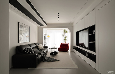 本案设计师以色彩的高度凝练与造型的极度克制为语言,在满足功能之基上,将空间、器物与居住者的喜好、性格相融合,打造现代风空间。一束光、一道线、一片纯净的留白,皆是设计师的创意所在。 空间摒弃繁杂的色调堆砌,以黑白灰等经典色系为主旋律,如泼墨山水般,用最简洁的色彩语言,铺陈出空间的大气与静谧。红色、黄色等暖色调及藤编元素的软装,如跳动的音符,为空间增添温馨感和活力。 筒灯+线灯+台灯的组合取代传统主