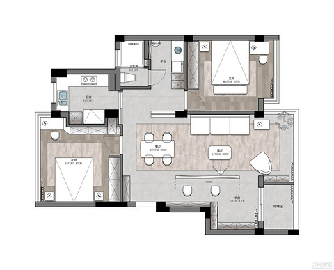 【作品简介】坐标丨湖州·大发-融悦四季户型丨3室2厅1厨2卫面积丨115平方米风格丨现代简约施工单位 | 圣都家装 设计师丨陆淼辉 本案的屋主是一位单身女教师,房屋前期与父母一同共住,后期会作为婚房。对于家的模样,希望拥有现代的高级感和品质感;保留三间卧室、两间卫生间,最好能有单独的书房。 设计亮点↓↓↓①减少空间隔断,形成LDKB开放式布局,获得优越的采光,让空间趋于舒阔、明朗。②动静分区合理