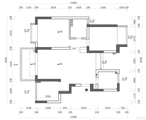 ◆ Area:118㎡ ◆ Address:临安如意云庭 ◆ Design Style:现代中式 ◆ Interior Decoration Design:铭品装饰 平面设计图 玄关 客厅 餐厅 厨房 主卧 儿童房 卫生间