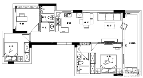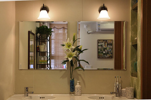 老帖重发,这是一套60平米两室一厅的房子,装修完成之后,搬家入住,贵在小房子很有特色,就来献丑了。 上一张最得意的干区照片 双台盆早上可以两个人一起用 非常方便 旁边做了一个壁龛 可以放一些零碎的东西 进门正对的就是厨房 右手边是一个顶天立地的柜子 可以放换下的大衣和雨伞一类的东西 左边是一个鞋柜 因为房子小也借此和客厅稍作分割 我觉得大部分人做饭的时候应该都是习惯把乱七八糟的东西都摆在台面上的