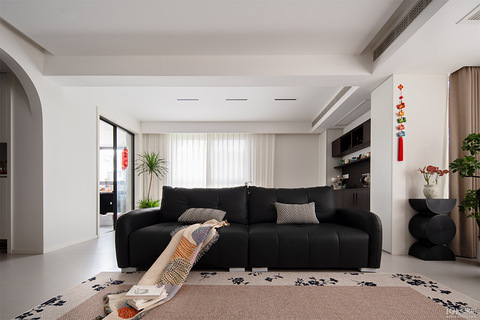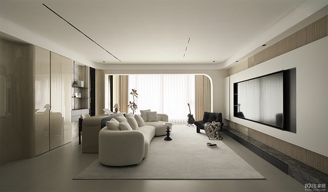 一推开门就觉得踏实,玄关的木饰面 + 鹿头挂画特别有温度,换鞋、放包都顺手,一点不杂乱。 客厅是我最爱的区域,弧形沙发 + 大落地窗,采光绝了! 这次选了铭品装饰,细节考虑得太到位了,真正帮我装出了一个温馨又好住的家,全程省心又放心。 大弧形沙发软乎乎的,往上面一瘫,不管是追剧还是办公都特放松。 落地窗采光绝了,白天阳光洒进来,整个屋子亮堂堂的,晚上开个小灯,氛围感直接拉满。 电视墙的隐形收纳也很