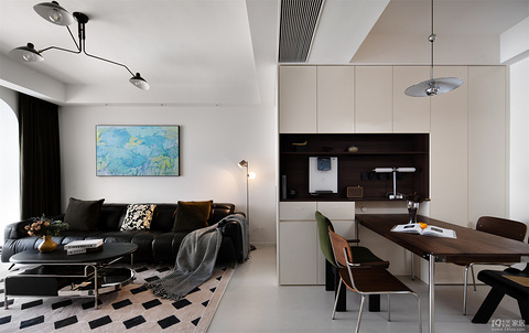 项目地址| 招商武林郡设计公司|良工装饰项目面积|89㎡项目风格|北欧风格设计师|李宦希装修总费用| 27万 客厅 淡灰色的墙面基调沉着有底气,以它打底,填充什么进来都不违和。 浅色布艺转角沙发搭配铁艺圆几,轻松围合出社交空间,加进艺术气韵浓郁的抽象画、色彩鲜明的靠包点缀,即刻令客厅空间多变且灵动起来。 餐厅 客餐厅呈开放式,布局更大气,采光更通透。餐桌靠墙而设,使过道相对更为宽敞。 2餐椅+1