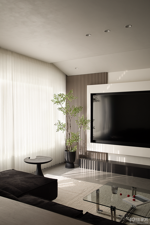 业主是一名互联网行业从事者,这套房子是他在2018年购入的新居,对品质生活有一定追求的他,希望身处快节奏时代中的自己,可以在家里,找回一种由自己定夺的生活节奏。 案例信息 项目地址| 合景映月台设计公司|良工装饰城东分公司项目面积|120㎡项目风格|现代风格设计师|陈海龙装修总费用| 45万 客厅 在空间的比例切割和分布上,客厅整体线条的走向都隐喻着设计师对空间的拿捏和把握。黑白灰过渡流畅,呈现