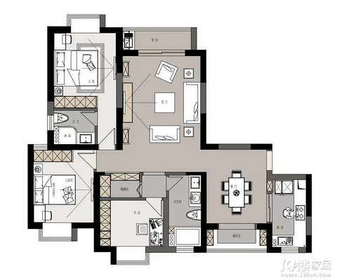 婆婆带娃装修模板!115㎡三室两厅收纳无压力