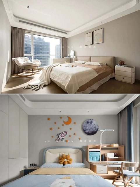 136方的房子,虽然不是刚需户型,但对我家来说还是希望以实用主义路线为主,一家四口还有老妈也常住帮我们带娃,在生活上有很多地方还是蛮需要好好规划处理的,比如说收纳、生活习惯、洗漱的高峰期问题等等。找菲拉来设计也是关注了挺久,设计风格我和老公都比较喜欢,有调性又务实,所以也没有太纠结过关于找哪家设计公司这件事,面谈之后聊得来就定了下来,开始了新家“变装”,也收获了让人出其不意的惊喜~ 面积:136