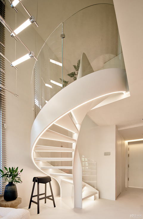 -未来里90㎡极简奶油风- 素墙怀抱,将喧嚣轻轻抖落家是无声的歌分寸之间,生长出秩序的温柔 柔和·静谧宁静与美好,在这方空间里,缓缓生长、静静蔓延,是身体与心灵都能栖息的温柔容器,承载着关于家的浪漫与妥帖。本案设计师整体以自然光为主,色调纯净,打造出舒适宜人的空间感。 中央的白色螺旋楼梯是空间的灵魂所在,玻璃护栏的搭配,不仅增强了楼梯的轻盈感,更赋予空间一种穿透性的美感,使空间无限延伸。