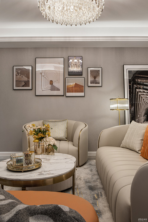 本案的主人公是一对时尚年轻的小夫妻,共同经营着一家服装公司,审美在线,对于时尚潮流和生活美学有着独到的见解。那么,当现代简单的线条遇到前卫利落的夫妻,一个既任性又实用,有交融也有分隔的空间自然而然形成了。 基本信息设计施工 |良工家装项目面积|135㎡项目风格|现代风格 客厅 入户即设两面椭圆形的长虹玻璃屏风,古雅的造型有别于传统屏风的视觉突兀感。 朦胧轻盈的磨砂质地,透光不透明,还延伸了空间视觉