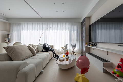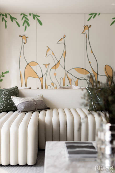 屋内的装修风格选择了舒适且温馨的奶白色装修,墙壁上的壁画在房间里点缀着简约的抽象设计,长颈鹿的可爱卡通形象成为了房间里最亮眼的存在。就如同回到童年的家,洁白的空间带来的温柔家居,植物的点缀也为房间装点出最美的空间 【案例信息】 【项目名称】:水印城【项目面积】 :120㎡【项目户型】 :两室两厅【常住人口】:两成人,一儿童【装修风格】:现代简约【装修公司】:楚邦上易装饰 01 客厅 有质