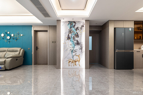 我是一名幼儿园老师,所以希望给自己两个可爱的小宝贝打造一个温馨时尚、富有内涵的家!老公经营网店,他对设计风格的要求就是精致,就像他的店铺一样,能够展现一种小而美的情怀。很庆幸装修的时候遇到了圣都,遇到了王艳设计师,在她的精心设计下就有了我们套满意的新家。我们家两个字概括:就是“小资”!当浅冷色调的轻奢搭配上美式的舒适享受,成就了我们家的格调和质感:文化感、时尚感、情调感以及家的温馨感。住在这样的家