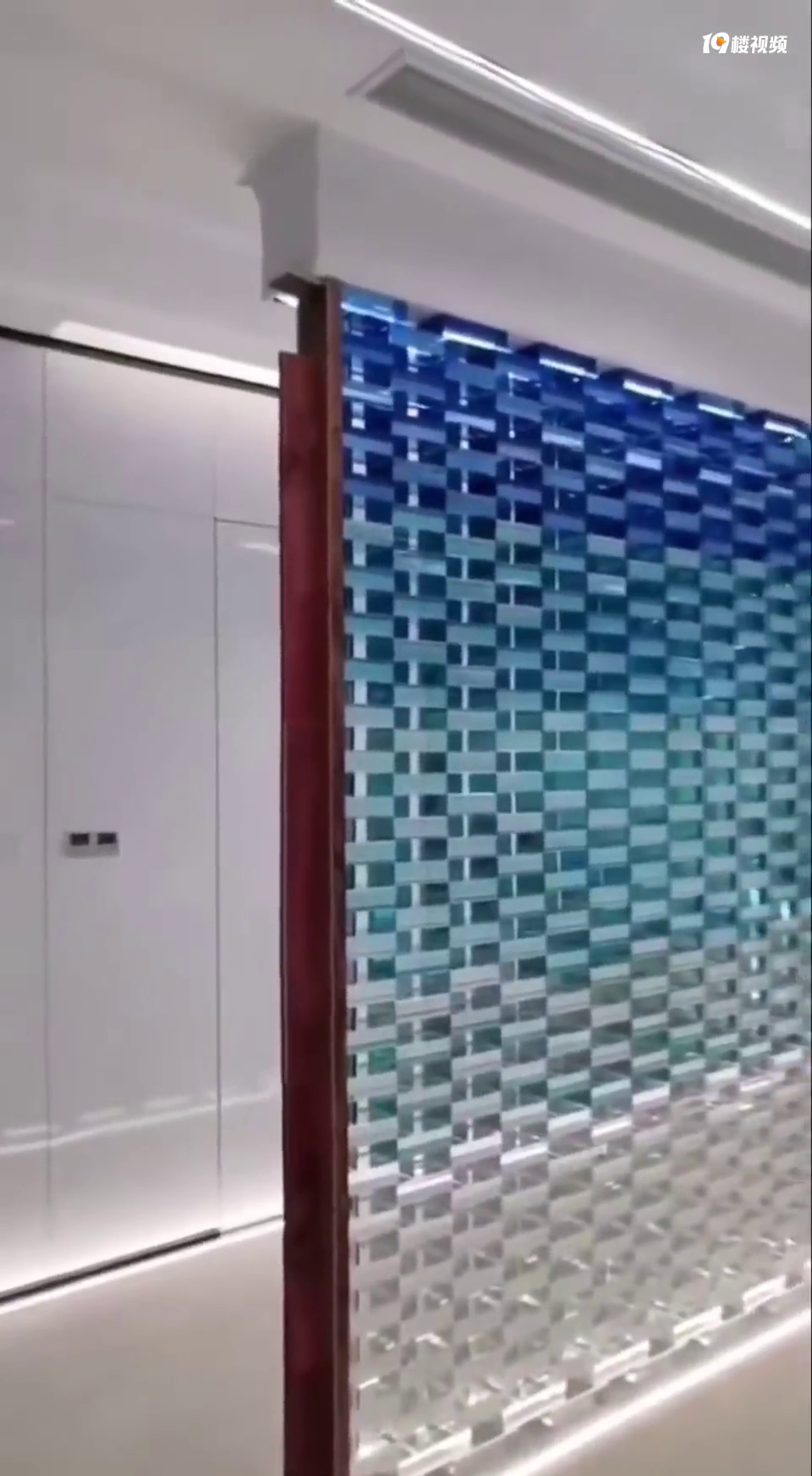湖蓝渐变色玻璃砖客户隔断墙案例分享
