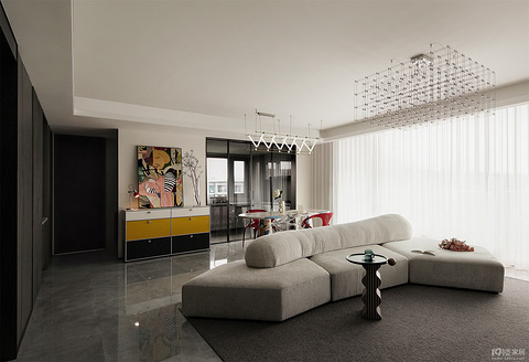 项目地址 / Address:江华玺云设计施工 / Co:铭品装饰风格 / Style:现代混搭项目面积 / Area:174㎡ 当繁华褪尽,我们渴望回归纯粹简约的生活方式,但简约并不代表空无一物的冷寂,或者无欲无求的佛系。它应该是一种内心明悟的取舍,抛却不必要的繁琐,将心思花在能体现居者审美情趣的设计细节。 本案公共空间是时下流行的横厅结构,原岩板电视墙平平无奇,四周还包了一圈黑色线条,显得比