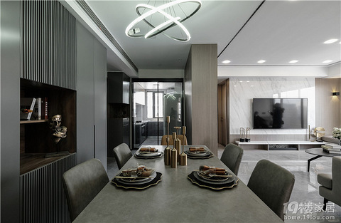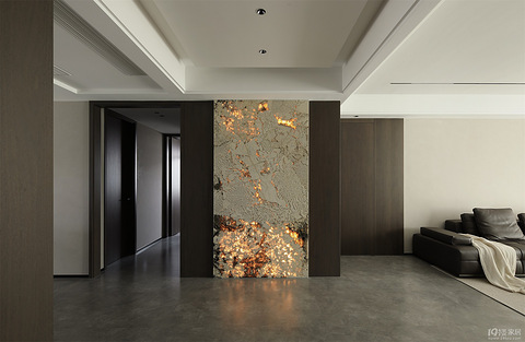 客餐厅抹掉杂乱的颜色,纹理与原始材质的碰撞打造出现代主义的空间。以艺术化陈列去回应深度诉求,也去真诚纯粹地回应“、物、景、心”各自的空间承载以及此不同维度四者的内在关系与平衡。装修公司:铭品装饰面积:126风格:现代轻奢 这是入户进入视野的画面。天然石材打开美学的视觉焦点,借光勾勒出具象空间,步步高 步步生莲,沉浸生活的氛围从这里开始。地面由灰色柔光砖通铺,令人内心感到无比平和。皮革、大理石、玻璃