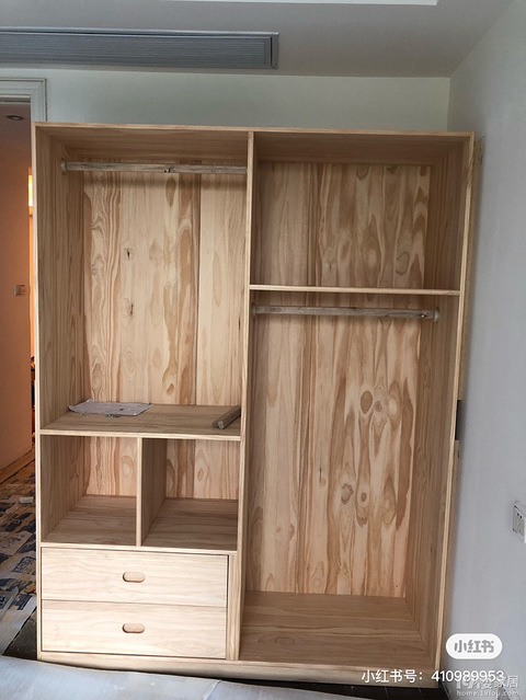 家里有小朋友,特别关注环保问题,选择了无胶水无甲醛的原木直拼板衣柜-小何木榫板。量门板的师傅都说这个柜子板子真不错,尺寸还和图纸一点没差。感谢给力的小何老板,不到两周就完成了。安装师傅手艺也特别好,一大早问什么时间能完成,要来量门板。师傅说三点可以,真的三点完成,一分不差[ej=1F602]