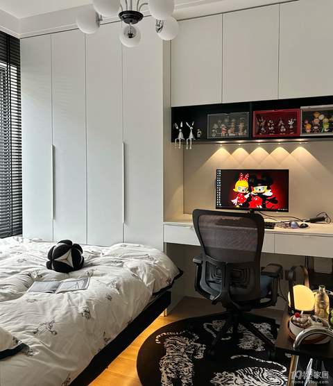 这是一个喜欢搜集各种各样有趣物件,喜欢简约温暖空间的业主,对收纳要求很高,有一个可爱的男宝,超喜欢拼搭乐高。这是一个同样喜爱各种玩具,和小孩子没有代沟的妈妈,她对孩子的私人空间要求极高,希望在这个家能让孩子在游玩,学习,休息和生活习惯上都有充分的独立自主性。 客厅不仅是接待客人的厅室,而更是家人每日的起居室,起居空间的放大是为了让家人更多地在这里交流、互动。 动漫人物头部锐利干净的线条,高饱和对