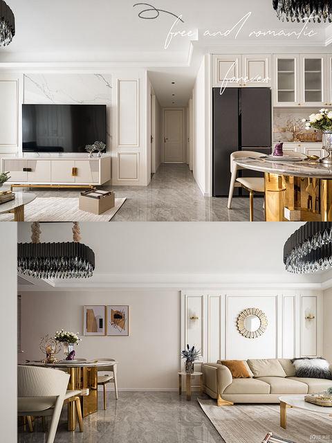建筑面积 / 120㎡设计风格 / 法式混搭项目地址 / 英特学府合作类型 / 全包——18w设计理念 很多人的心中都有一个巴黎梦,卢浮宫的人文情怀,香榭丽舍的罗曼蒂克,交织成最美的梦境,透过风光流转的明媚微光 在隽永如诗如画的建筑中,在繁华似梦似锦的大街上,暖风微醺,塞纳河畔的独特风景,那是时光沉淀下来的法式浪漫 百位在职获奖设计师一对一定制化免费设计 设计亮点 业主是一对刚结婚的年轻小夫妻,