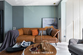客厅阳台敲掉包进来,整体空间扩大一倍。灰蓝色沙发背景墙与置物登背景墙颜色做一个深浅交错,利用色彩效果营造出空间层次感。土橙色皮质简约沙发,搭配休闲舒适单人沙发椅,简单大气。