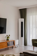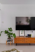 客厅是家人频繁互动的区域,也是亲友来访的主要活动空间,索性去除茶几与多余装饰,大面积留白铺上地毯,夫妇俩可以边观影边聊天,也方便和家里的小宠物一起席地玩耍。