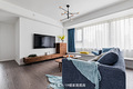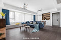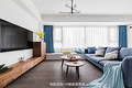 蓝色布艺沙发、窗帘,与之交融的白纱、原木家具,让人看到一种清新寡淡、不加言语的生活状态。