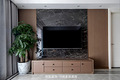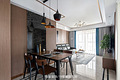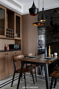 餐厅到客厅之间的视觉受阻,起到一个简单的缓冲作用。餐桌靠墙位置利用黑色大理石装饰,结合两边的木饰面装饰,非常具有层次感和高级感。