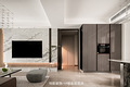 右侧的木门套换成了黑色哑光不锈钢门套,与电视背景墙做呼应,提升了整体的轻奢感。