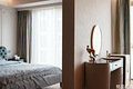 空间大量运用复古大理石、人字拼木地板、金属雕花家具,搭配水晶吊灯、复古壁炉等元素,还原法式中古的奢华质感;同时通过拱门设计、曲线造型的软装,柔化空间线条,增添浪漫氛围...空间大量运用复古大理石、人字拼木地板、金属雕花家具,搭配水晶吊灯、复古壁炉等元素,还原法式中古的奢华质感;同时通过拱门设计、曲线造型的软装,柔化空间线条,增添浪漫氛围。餐厨区的大理石吧台兼具社交与收纳功能,酒柜的玻璃隔断提升空间通透感;卧室以皮质软包床头、复古梳妆台营造私密且精致的休憩场景;书房的法式扶手椅与金属灯具,让工作学习也充满仪式感。展开