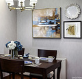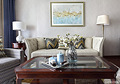 简约美式就像自信的能量塔,混合着无比清新、充满活力的艺术气息,本案作品以素雅色机理壁纸做为大面积的墙面基调,配上经典美式布艺、实木结合的家具,融入些时尚金属元素,每件软装单品围绕主题色,展现着摩登美式的浪漫情调。
