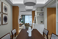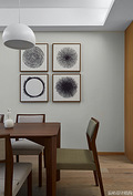 入户玄关,透过白色的纯净,给人予以质朴印象,暖暖的配色,几何软装语言,将光的动线纳入规划,使空间的每个位置都带着透亮。客厅利用采光良好的条件结合居住者的生活习惯,以台式简约风格来塑造空间情感,通透简洁,但却最让人放松和沉浸享受,以形框出住宅丰富的生命力。