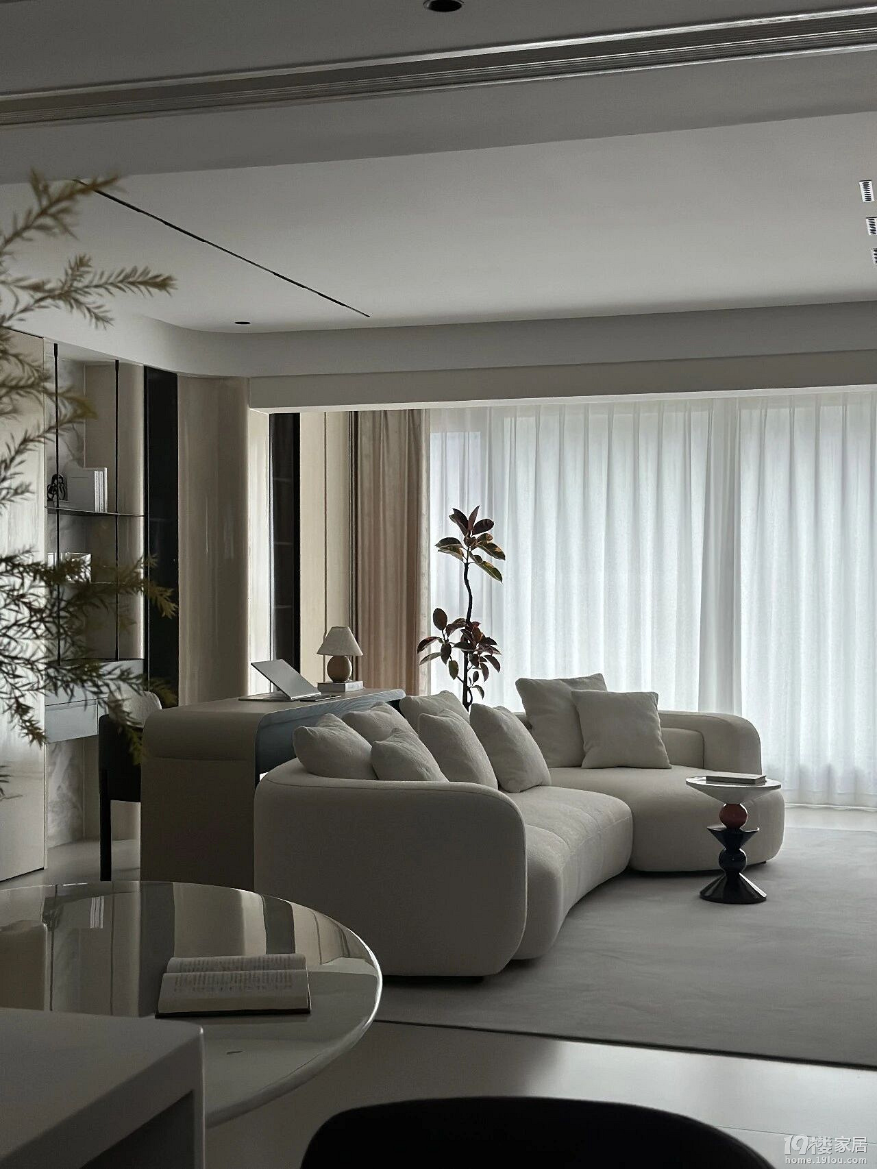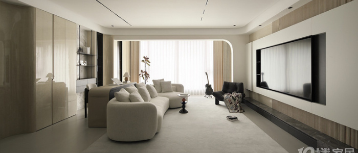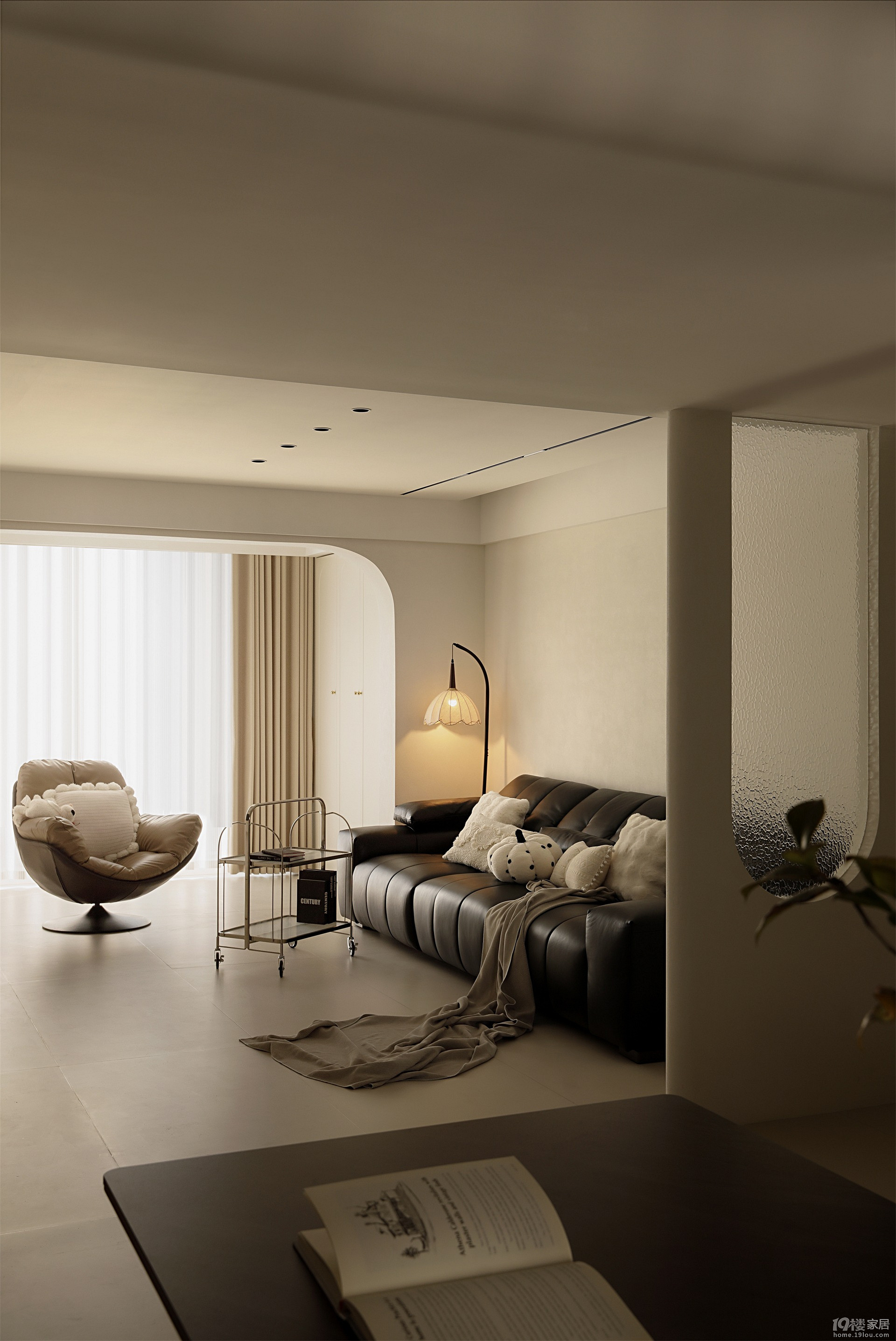 弧形沙发配合大落地窗,开放布局拯救奇葩户型